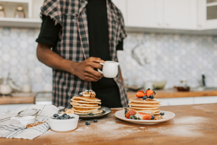 Use pancake batter to create shapes like Christmas trees or snowflakes.